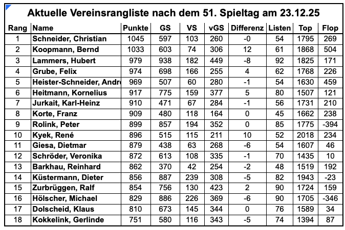 Vereinsrangliste